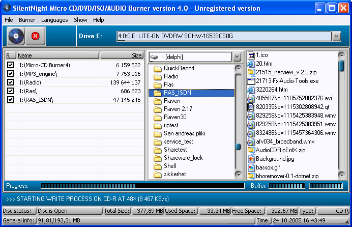 the files I had dragged over to the burn list. When I pushed the Burn button
